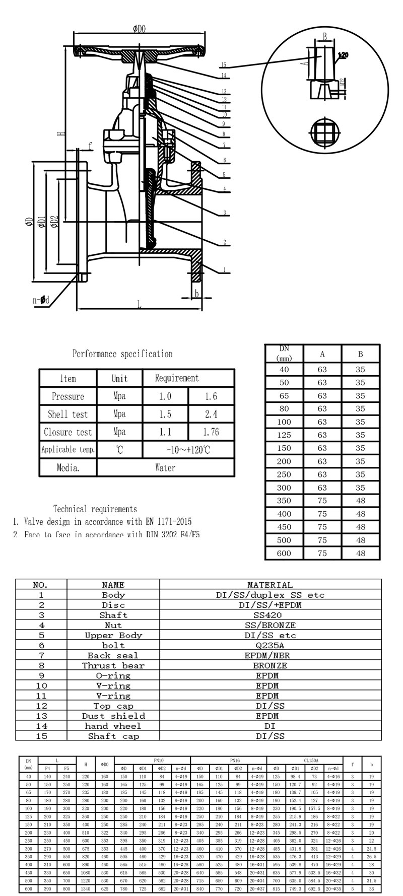 • Face to face: DIN F4/F5, BS5163, ANSI B16.10