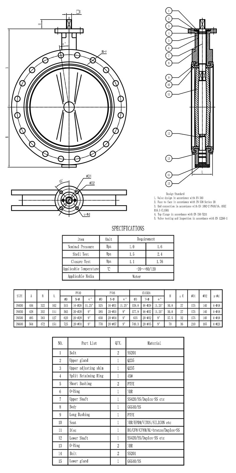 - Valve design:API609, BS EN593