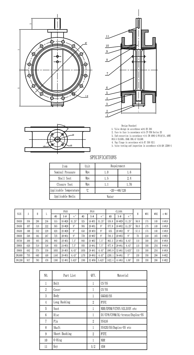 - Valve design:API609, BS EN593