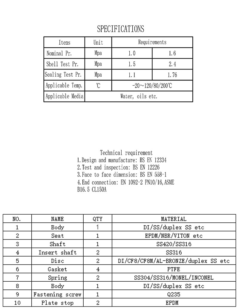 - Disc: WCB, ductile iron, bronze, Stainless steel, super duplex SS